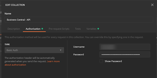 In the “Authorization” tab set the type to “Basic Auth” and enter Username and Password to login into Dynamics 365 Business Central (D365BC). In here I used Web Service Access Key to login to Dynamics 365 Business Central (D365BC).